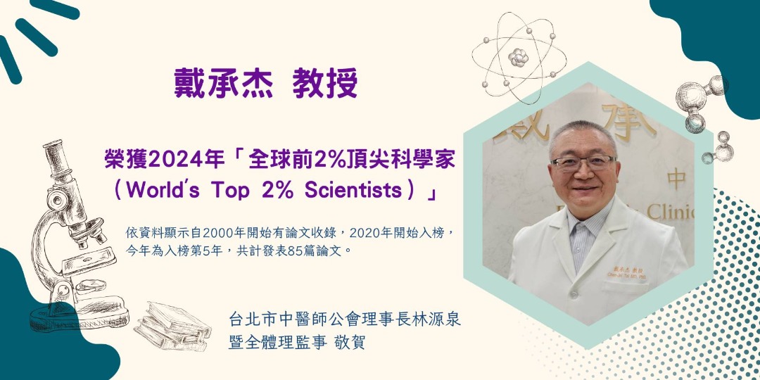 狂賀!!!賀戴承杰院長連續五年入榜Stanford World's Top 2% Scientists!